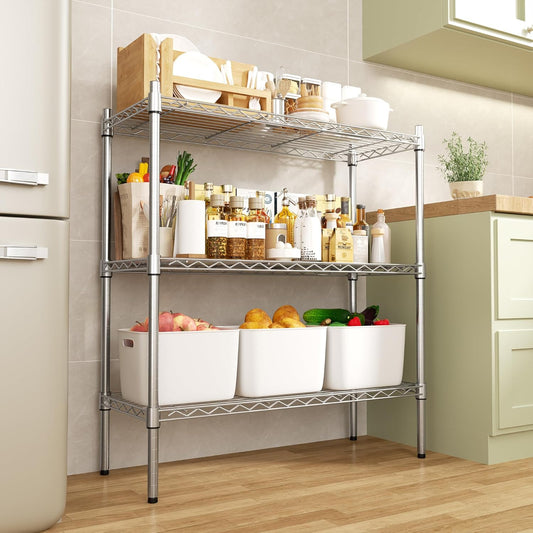 Auslar 3-Shelf Storage Wire Shelves Heavy Duty 3 Tiers Standing Shelving Units Adjustable Metal Organizer Wire Rack, Chrome