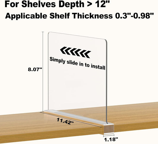 Shelf Dividers Purse Organizer for Closet: 12-Pack Acrylic Bag Storage Organizer for Handbags, Clutches, Clothes, Sweater, Towel on Wood Shelves