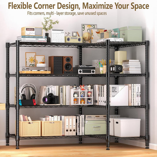 Himimi 4-Tier Adjustable Metal Shelving - 1600LBS Capacity, Heavy Duty Wire Organizer for Kitchen, Garage, Pantry, Laundry, 72" W x 18" D x 60" H, Black