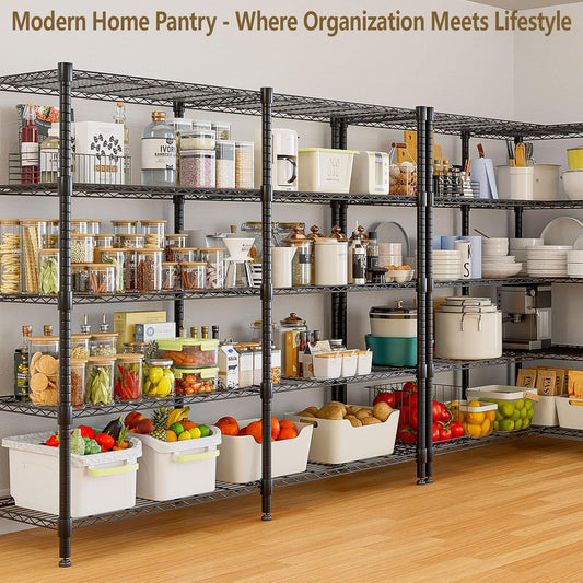 Himimi 72" W Wire Rack Shelving-2000LBS Capacity, Adjustable Storage Shelves Metal Shelves for Storage, 5-Tier Heavy Duty Wire Organizer for Kitchen, Garage, Pantry, 72" W x 18" D x 72" H, Black