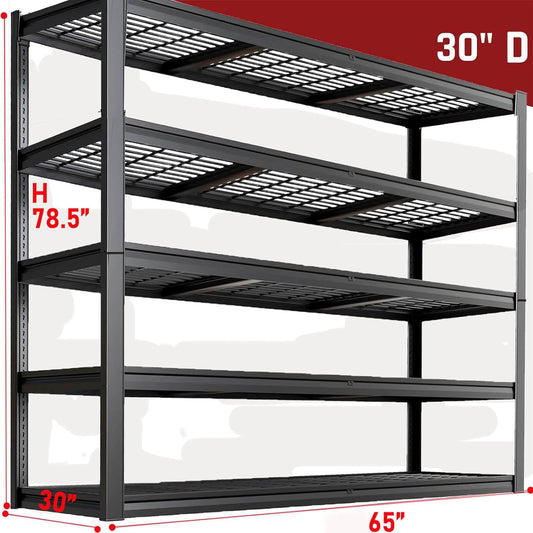 65" W Garage Shelving Heavy Duty, 5 Tier Garage Shelves, 30" D Adjustable Storage Shelving Unit, Commercial Metal Shelf for Warehouse, Pantry, School, Shop, 68" Wx30 Dx79 H