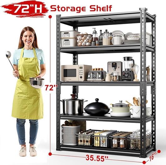 TigerParty 2050LBS Heavy Duty Garage Shelving, 5-Tier Adjustable Storage Shelves, Metal Shelving Unit and Storage Rack for Pantry, Basement, Warehouse, 72" H x 36" W x 16" D, Melamine Faced Board