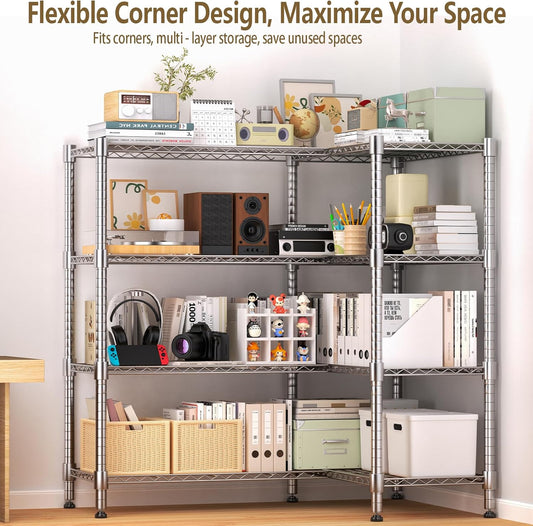 Himimi 4-Tier Adjustable Metal Shelving - 1600LBS Capacity, Heavy Duty Wire Organizer for Pantry, Kitchen, Garage, Laundry, 72" W x 18" D x 60" H, Silver