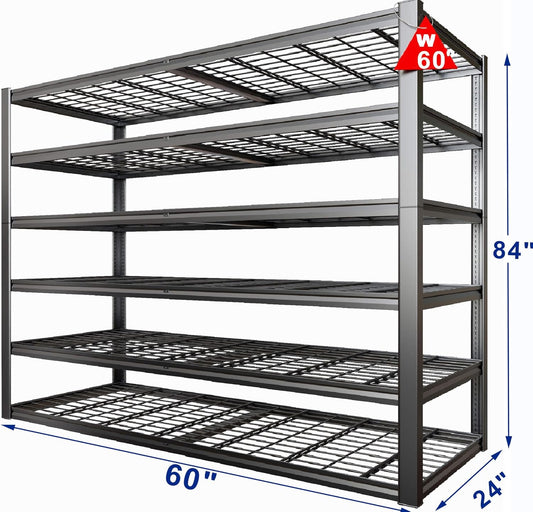 60" Wide Heavy Duty Garage Shelving Adjustable 6 Tier Garage Storage Shelves 3900LBS Metal Shelving Unit Industrial Utility Shelf, 84" H x 60" W x 24" D