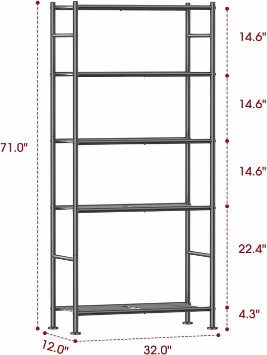 Storage Shelves - 5 Tier Shelf Organizer, Sturdy Metal Garage Shelving with Adjustable Leveling Feet, Space-Saving Shelves Organizer for Pantry, Laundry, Kitchen (32" x 12" x 71", Black)