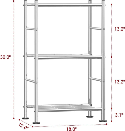 Storage Shelves - 3 Tier Shelf Organizer, Sturdy Metal Shelving with Adjustable Leveling Feet, Space-Saving Shelves Organizer for Pantry, Laundry, Kitchen (18" x 12" x 30", Silver)