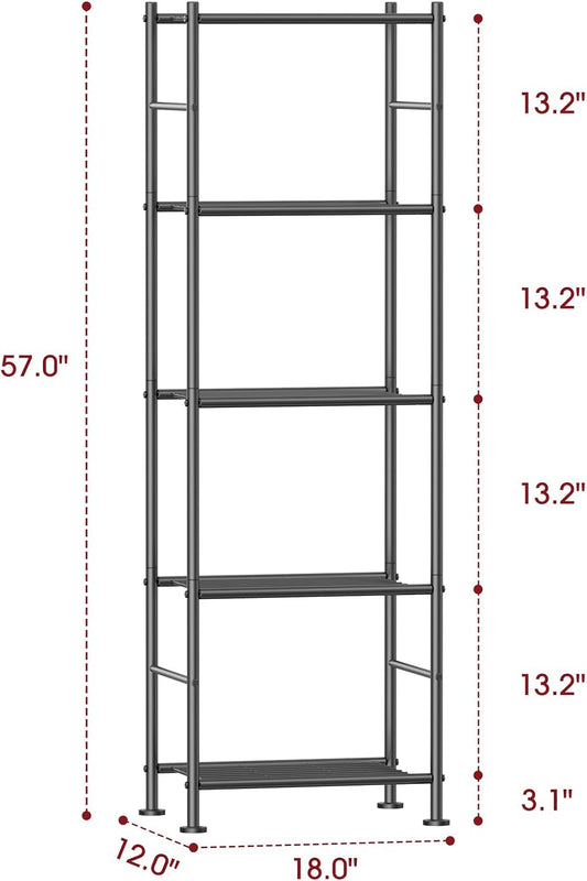 Storage Shelves - 5 Tier Shelf Organizer, Sturdy Metal Garage Shelving with Adjustable Leveling Feet, Space-Saving Shelves Organizer for Pantry, Laundry, Kitchen (18" x 12" x 57", Black)