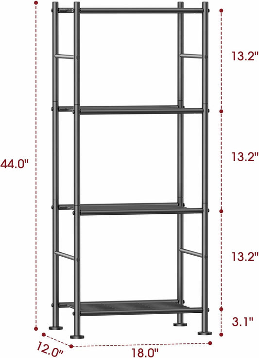 Storage Shelves - 4 Tier Shelf Organizer, Sturdy Metal Garage Shelving with Adjustable Leveling Feet, Space-Saving Shelves Organizer for Pantry, Laundry, Kitchen (18" x 12" x 44", Black)