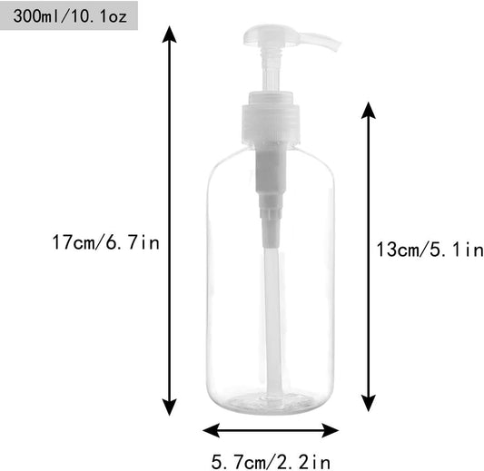 Yebeauty Pump Bottle Dispenser, 4 Pack 10oz/300ml Plastic Dish Lotion Soap Dispenser Clear Liquid Shampoo Container for Bathroom Kitchen Hotel Body Wash
