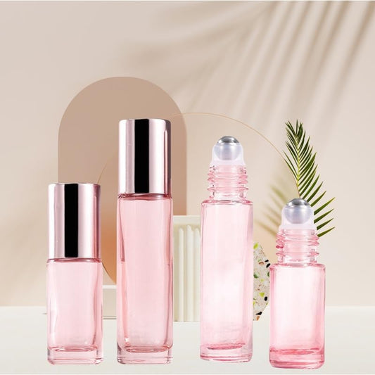 10 Pack Glass Essential Oil Roller Bottle,10ml Pink GlassRoller Bottles with Stainless Steel Roller Balls,Refillable Massage Roller Bottle Perfume Bottles for Travel