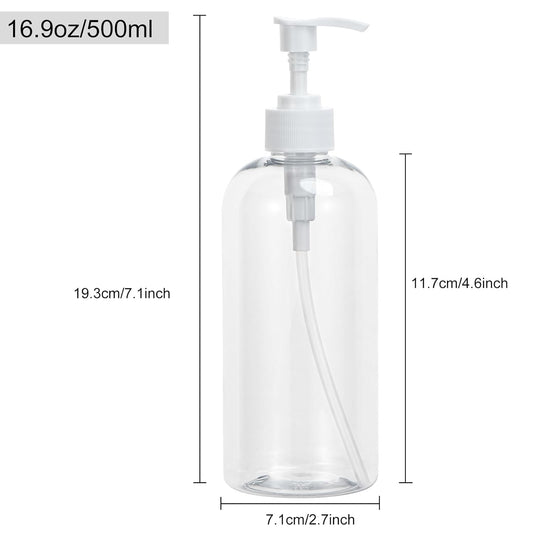 Yebeauty Pump Bottle Dispenser, 3 Pack 17oz/500ml Dish Lotion Soap Dispenser Plastic Liquid Shampoo Container for Bathroom Kitchen Hotel Body Wash, Clear