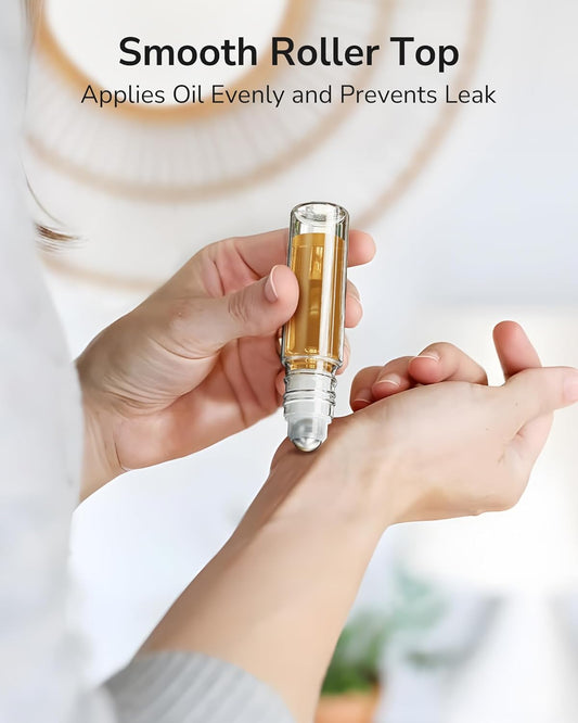 ULG 24-Pack Essential Oil Roller Bottles 10ml, Empty Bottles with Stainless Steel Roller Balls and Waterproof Labels, Clear Roller Balls For Essential Oils