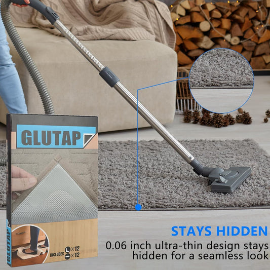 Home Techpro Rug Pads Grippers, 12 PCS Non Slip Washable Grippers for Rug, “Vacuum TECH” - New Materials to Anti Curling Rug Pad : Keep Your Rug in Place & Make Corner Flat and Easily Peel Off