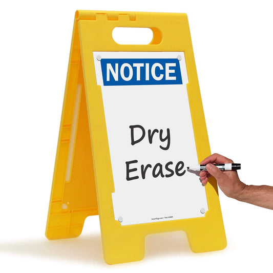 SmartSign 25 x 12 inch “Notice” Write-On Two-Sided Folding Floor Sign, Dry Erase, Digitally Printed Polypropylene Plastic, Multicolor, Made in USA