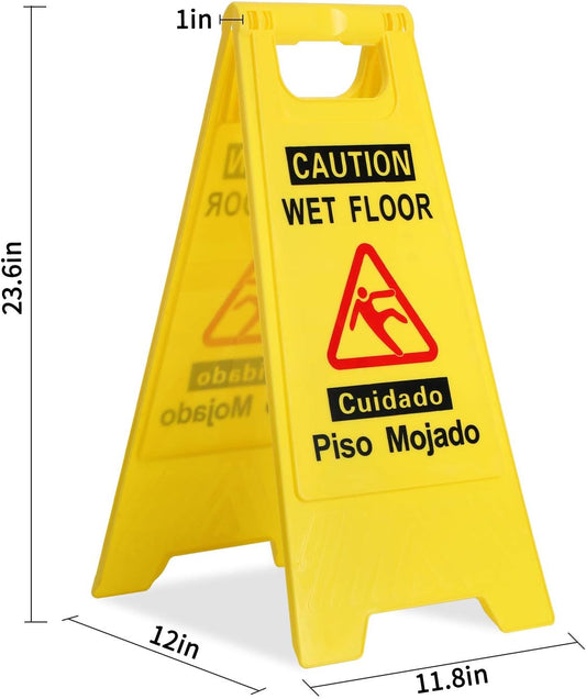 XPCARE 24 Inches Caution Wet Floor Sign,4PACK Yellow Bilingual Double-Sided Safety Warning Signs,A Frame Safety Wet Floor Signs Commercial