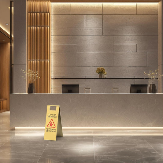 Stainless Steel Out of Service Sign Portable Foldable Sign 2-Pack (Gold)