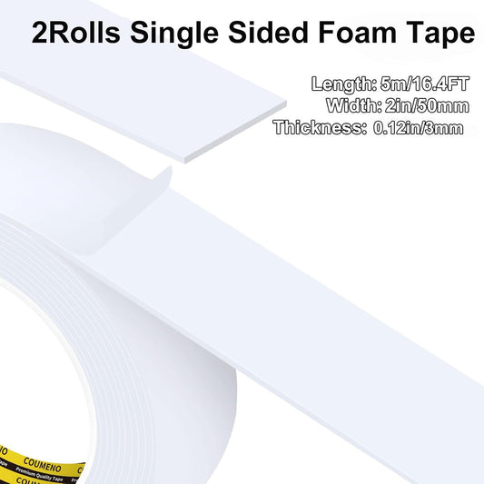 2 Pack Single-Sided Adhesive White Foam Tape, Single-Sided Sealing Strip Foam Pad Sponge Tape Window Weatherproof, Self-Adhesive Insulation Sealing Tape (White) 2inX16.4FT