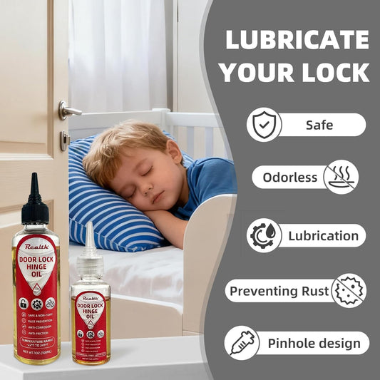 Realth Door Hinge Lubricant -Garage Door Lubricant Oil Great for Squeaky Hinges, Locks, Chains, Keyholes & More - Long-Lasting, Non-Toxic, Rust-Resistant with Precision Oiler Needle (30ml)
