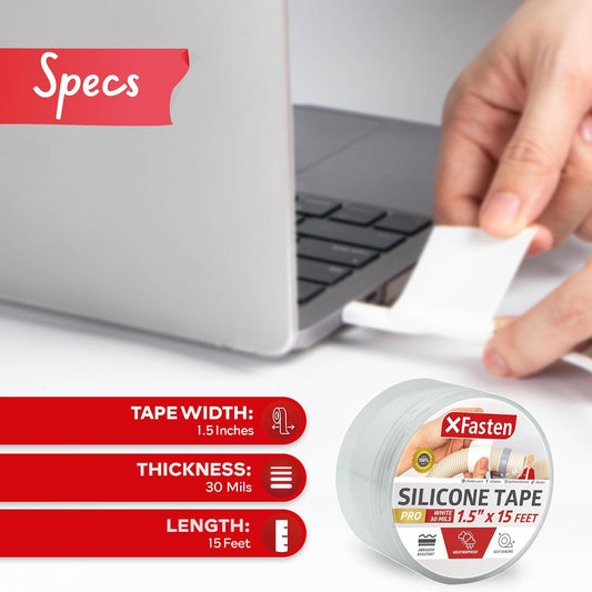 XFasten Self-fusing Silicone Tape Pro, Clear, 1.5-Inch x 15-Feet, 30mils Extreme Silicone Repair Pipe Tape for Electrical, Radiator Hose, Garden Hose, Coax Plumbers Water Seal and Stretch Tape