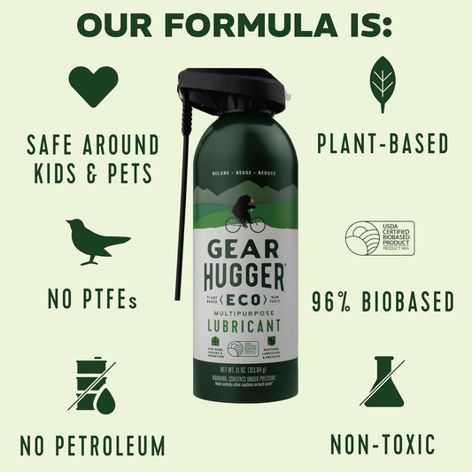 Gear Hugger Multipurpose Lubricant - Eco-Friendly (11 oz, Pack of 1), Rust Remover - Garage Door Lubricant Spray, Door Hinge Lubricant & Lock Lubricant - Plant-Based, No Petroleum, No PTFE