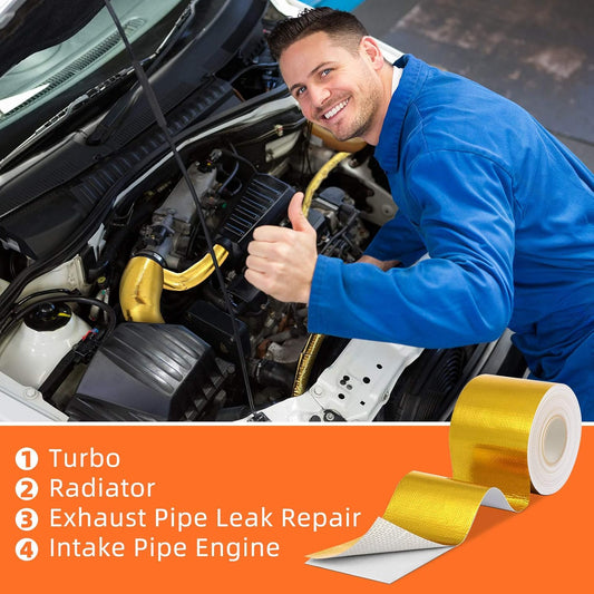 Zonon 2 Rolls Aluminum Foil Tape Heat Shield Tape Barrier Adhesive Reflective Fiberglass Thermal Insulation Reflective Material High Temp Protection(Gold,2 Inch X 32.8 ft)