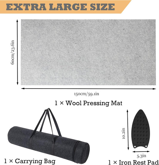 Wool Pressing Mat for Quilting - 15 x 54 XL Extra Large Felt Ironing Pad 3/8" Thick, 100% Wool Heat Resistant for Ironing, Sewing, Cutting on Ironing Board, Tabletop, Dryer, Countertop