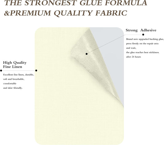 Fine Linen Repair Patches, Self-Adhesive Linen Fabric Patches, 8X11 inch Extra Size, Multi Color, Can be Used for Linen Sofa Repair and Linen Clothes Repair(8" x 11", Beige 3.0)