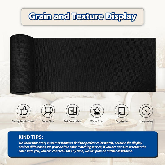 KING MOUNTAIN Linen Repair Patches, Self-Adhesive Fabric Patches, 4 X 63 inch Extra Size, Multi Color, Can be Used for Sofa Repair and Linen Clothes Repair (Black)