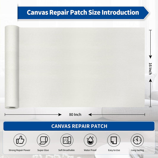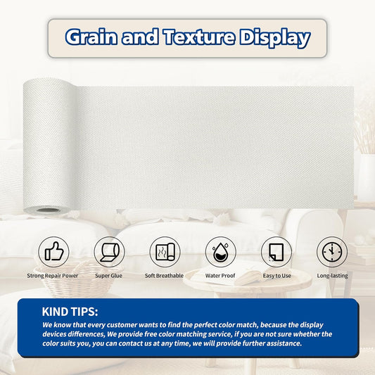 KING MOUNTAIN Linen Repair Patches, Self-Adhesive Linen Fabric Patches, 16X80 inch Extra Size, Multi Color, Can be Used for Linen Sofa Repair and Linen Clothes Repair (White)
