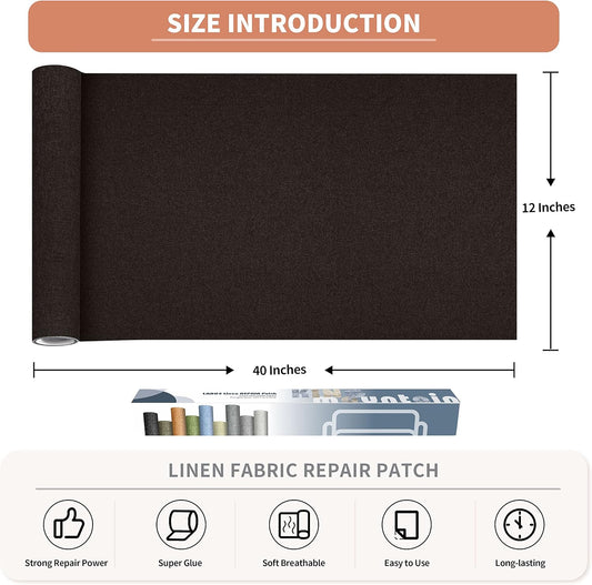 Fine Linen Repair Patches, Self-Adhesive Linen Fabric Patches, 12X40 inch Extra Size, Multi Color, Can be Used for Linen Sofa Repair and Linen Clothes Repair (12" x 40", Dark Brown)