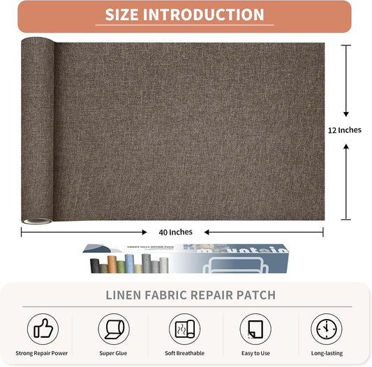 Fine Linen Repair Patches, Self-Adhesive Linen Fabric Patches, 12X40 inch Extra Size, Multi Color, Can be Used for Linen Sofa Repair and Linen Clothes Repair(12" x 40",Brown 1.0)