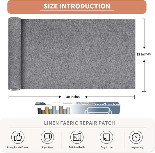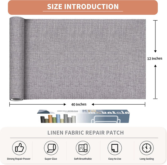 Coarse Linen Repair Patches, Self-Adhesive Linen Fabric Patches, 12X40 inch Extra Size, Multi Color, Can be Used for Linen Sofa Repair and Linen Clothes Repair(12" x 40",Light Grey)