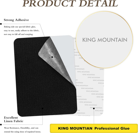 KING MOUNTAIN Coarse Linen Repair Patches, Self-Adhesive Linen Fabric Patches, 8X11 inch Extra Size, Multi Color, Can be Used for Linen Sofa Repair and Linen Clothes Repair(8" x 11",Black 1.0)