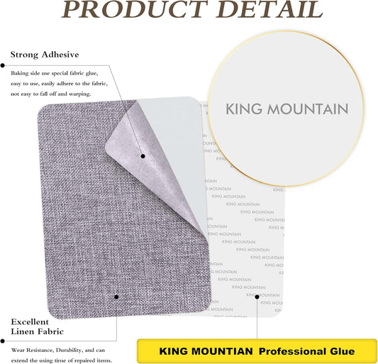 KING MOUNTAIN Fine Linen Fabric Patches, Self-Adhesive, 8x11 inch, 2 PCS, Multi Color, For Linen Sofa and Clothes Repair