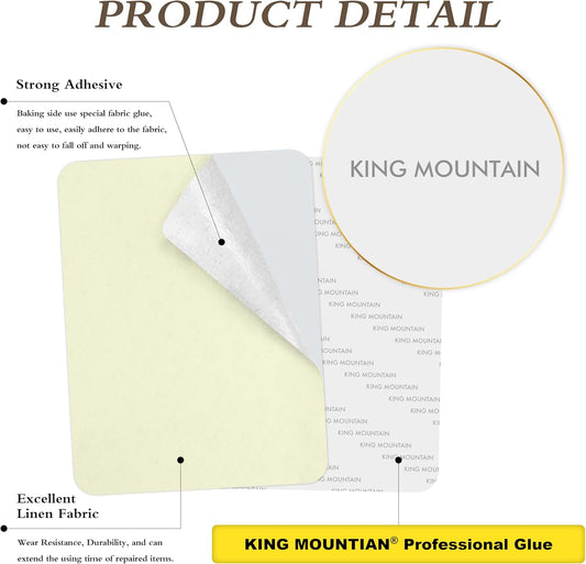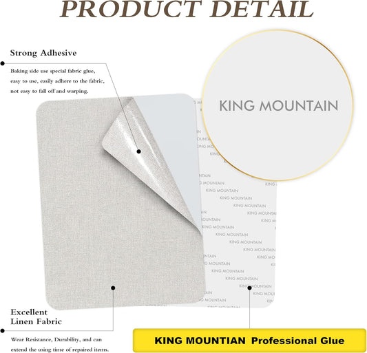 KING MOUNTAIN Fine Linen Repair Patches, Self-Adhesive, Off White, 8" x 11", Multi Color, Can Be Used for Linen Sofa and Clothes Repair