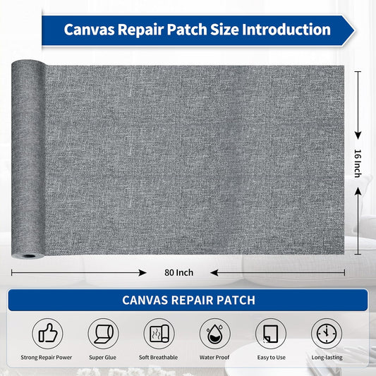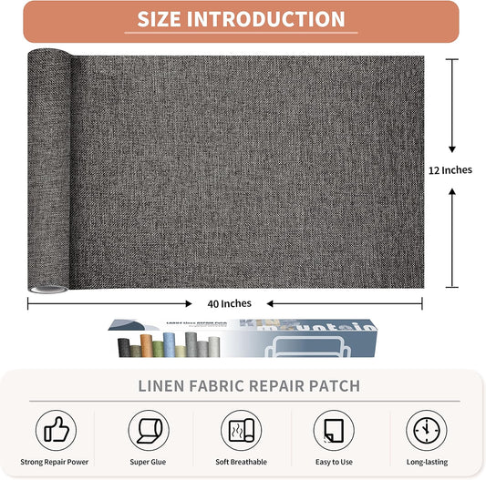 KING MOUNTAIN Linen Repair Patches, Self-Adhesive Linen Fabric Patches, 16X80 inch Extra Size, Multi Color, Can be Used for Linen Sofa Repair and Linen Clothes Repair (Charcaol Grey1.0)
