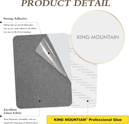 KING MOUNTAIN Fine Linen Repair Patches, Self-Adhesive Linen Fabric Patches, 8X11 inch Extra Size, Multi Color, Can be Used for Linen Sofa Repair and Linen Clothes Repair(8" x 11",Medium Grey 1.0)