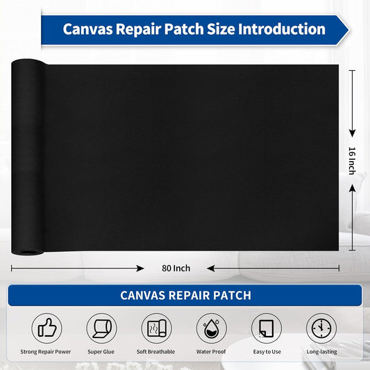 KING MOUNTAIN Linen Repair Patches, Self-Adhesive Linen Fabric Patches, 16X80 inch Extra Size, Multi Color, Can be Used for Linen Sofa Repair and Linen Clothes Repair (Black)