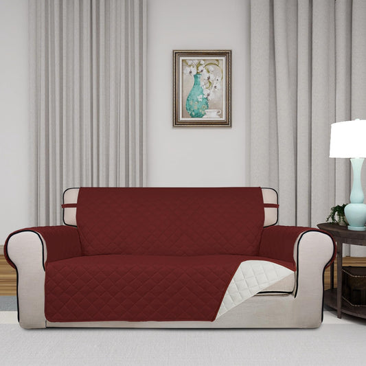 PureFit Reversible Quilted Sofa Cover, Water Resistant Furniture Protector, Washable Couch Cover with Non Slip and Elastic Straps for Kids, Dogs, Pets (Oversized Loveseat, Red/Ivory)