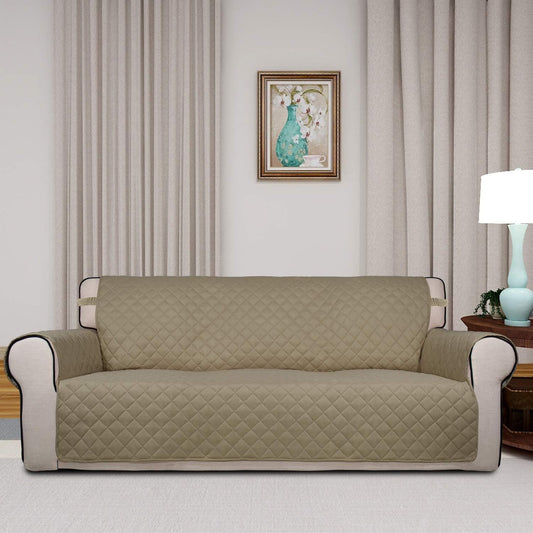 PureFit Reversible Quilted Sofa Cover, Water Resistant Slipcover Furniture Protector, Washable Couch Cover with Non Slip and Elastic Straps for Kids, Dogs, Pets (Sofa, Beige/Beige)