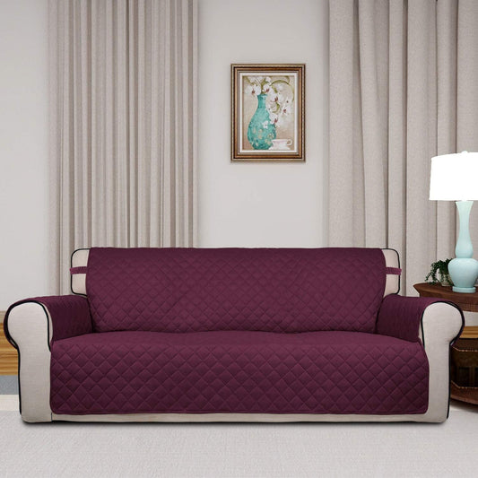 PureFit Reversible Quilted Sofa Cover, Water Resistant Slipcover Furniture Protector, Washable Couch Cover with Non Slip and Elastic Straps for Kids, Dogs, Pets (Oversized Sofa, Wine/Beige)