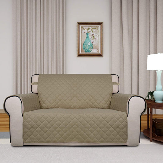 PureFit Reversible Quilted Sofa Cover, Water Resistant Medium Slipcover Furniture Protector, Washable Couch Cover with Non Slip Foam and Elastic Straps for Kids, Dogs, Pets (Loveseat, Beige/Beige)