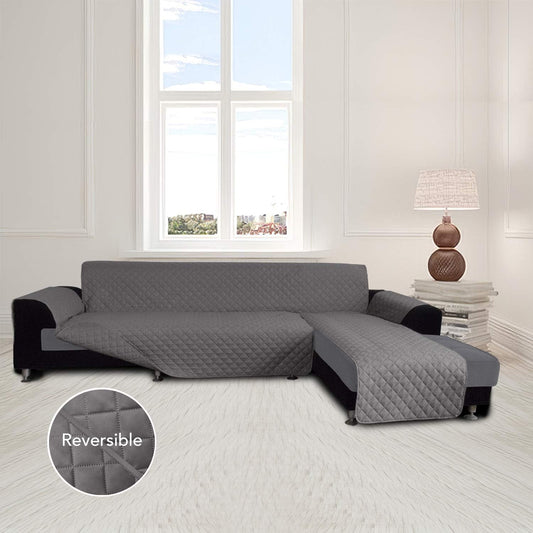 Easy-Going L Shape Sofa Slipcover - Sectional Couch Cover with Chaise Lounge & Reversible Sofa Cover Protection for Pets & Kids (Large, Gray/Gray)