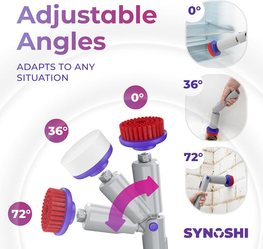 SYNOSHI PRO Electric Spin Scrubber, Cordless Cleaning Brush Bathroom Scrubber. Waterproof Shower Cleaner Brush with Adjustable Angles, 2 Speed, 180Min Work Time for Floor, Bathtub, Kitchen, Car, Tub