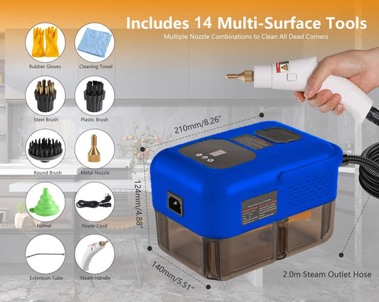 Handheld Steam Cleaner for Home, 2500W High Pressure Steamer for Cleaning, 9-Level Multipurpose Steam Cleaner for Car Floor Upholstery Kitchen Bathroom Grout Tile, 14 Accessories Included (Dark Blue)
