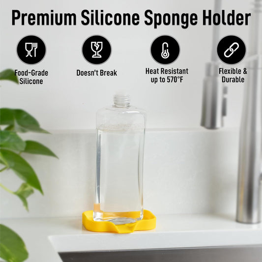 Zulay Kitchen Small Silicone Sponge Holder (4.9x3.3”) – Space-Saving Sink Organizer Tray for Sponge, Soap, Brush & More – Compact Non-Slip Dish for Kitchen & Bathroom (Yellow)