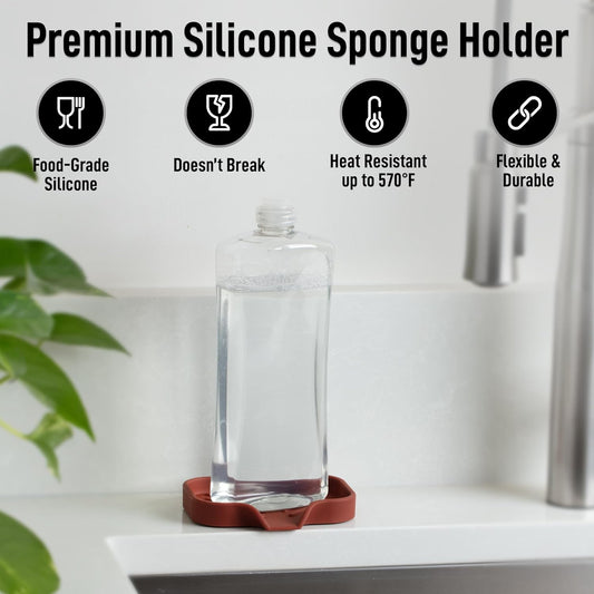 Zulay Kitchen Small Silicone Sponge Holder (4.9x3.3”) – Space-Saving Sink Organizer Tray for Sponge, Soap, Brush & More – Compact Non-Slip Dish for Kitchen & Bathroom (Canyon Rose)