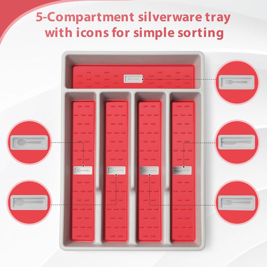 Silverware Organizer with Cutlery Icons,Silverware Tray for Kitchen Drawer,Flatware Tableware Cultery Drawer Organizer Utensil Organizer with Non-slip TPR Linings,Kitchen Organization Essentials