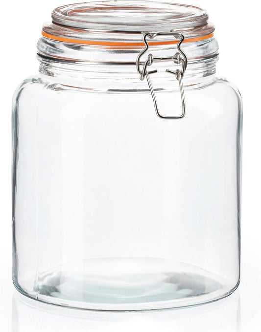 kitchentoolz Half Gallon Glass Large Mason Jars with Airtight Lid - 64oz Wide Mouth Flour & Sugar Container. Also for Sourdough, Pasta, Pickles, Cookies- Flip Top Hinged Closure - 2 Pack
