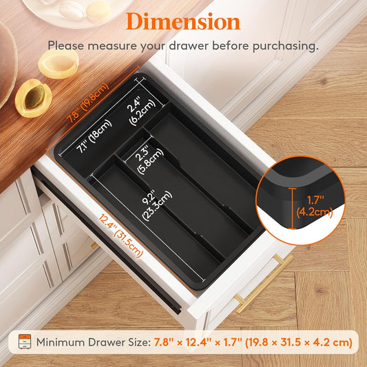 Silverware Organizer - Expandable Kitchen Drawer Organizer, Utensil Drawer Organizer, Adjustable Plastic Flatware and Cutlery Holder, Kitchen Organizers Storage for Forks Knives, Black